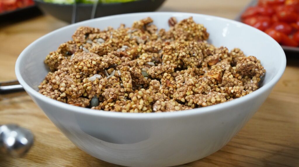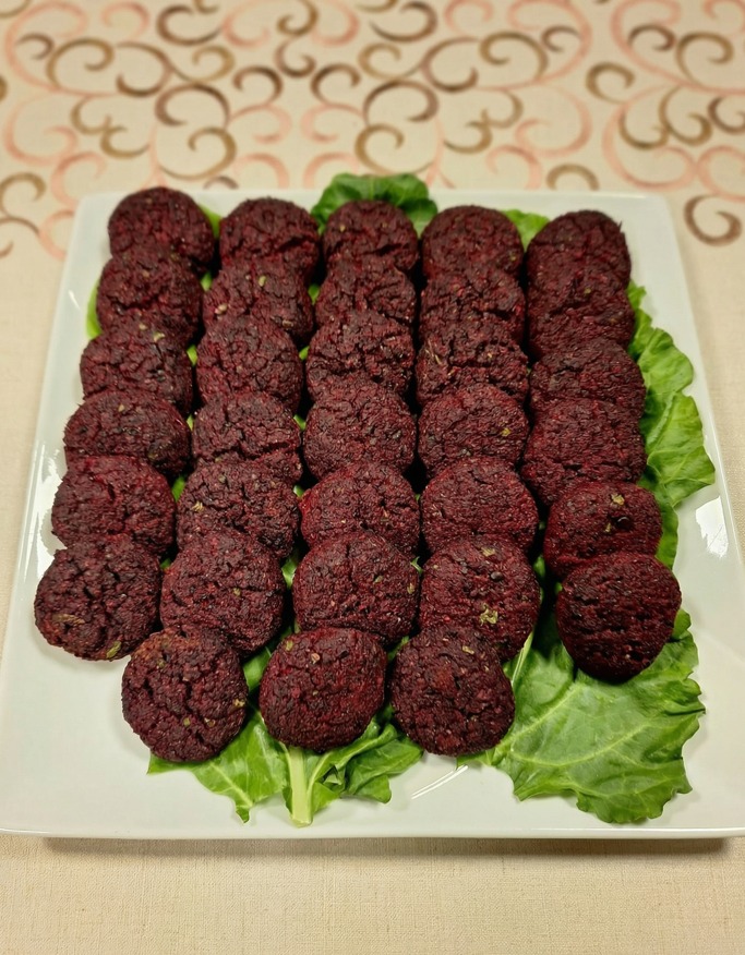 קציצות אורז אדום עם ירקות קלויים